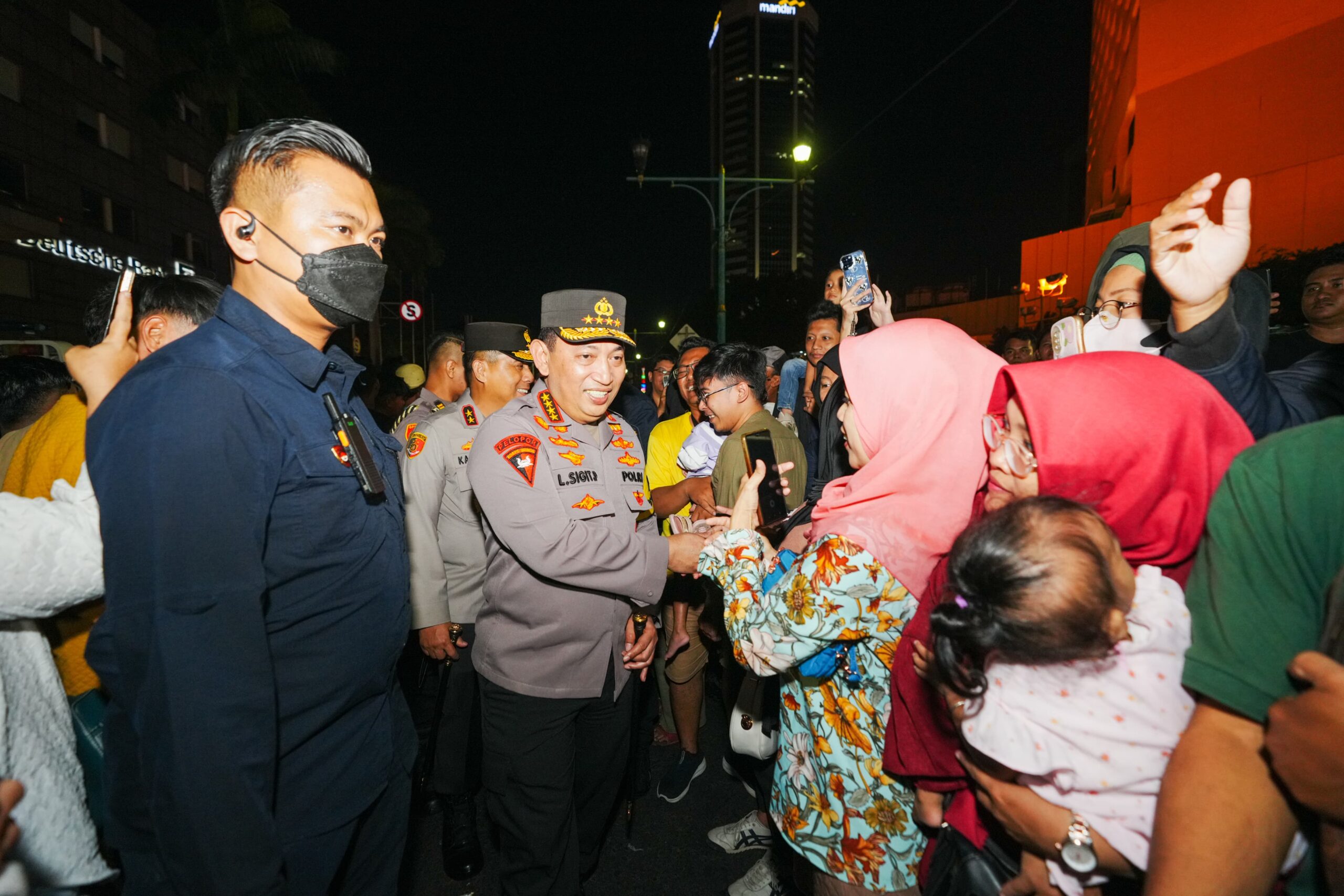 Jenderal Sigit Tiba di Bundaran HI Pada Pukul 23.00 WIB di dampingi Oleh Kakorlantas Irjen Aan Suhanan, Kadivhumas Polri Irjen Sandi Nugroho, Kapolda Metro Jaya Irjen Karyoto. Pangdam Jaya Mayjen Rafael Granada Baay, PJ Gubernur Jakarta Teguh Setyabudi dan Jajaran Lainnya.