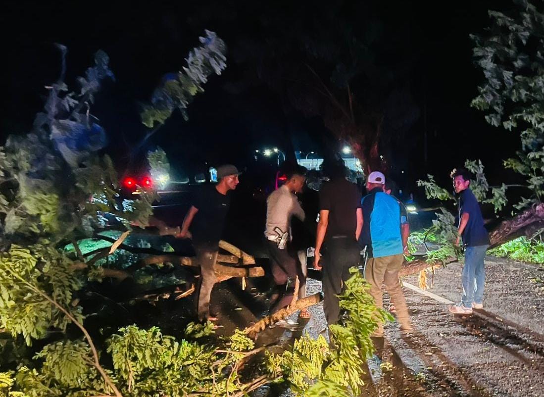 Pengabdian tanpa batas gerak cepat ditunjukan Unit gakum Satuan Lalulintas Satlantas Polres Bima Polda NTB evakuasi pohon tumbang pada Jum,at malam ( 19/12/25) sekira pukul 22.26. Wita